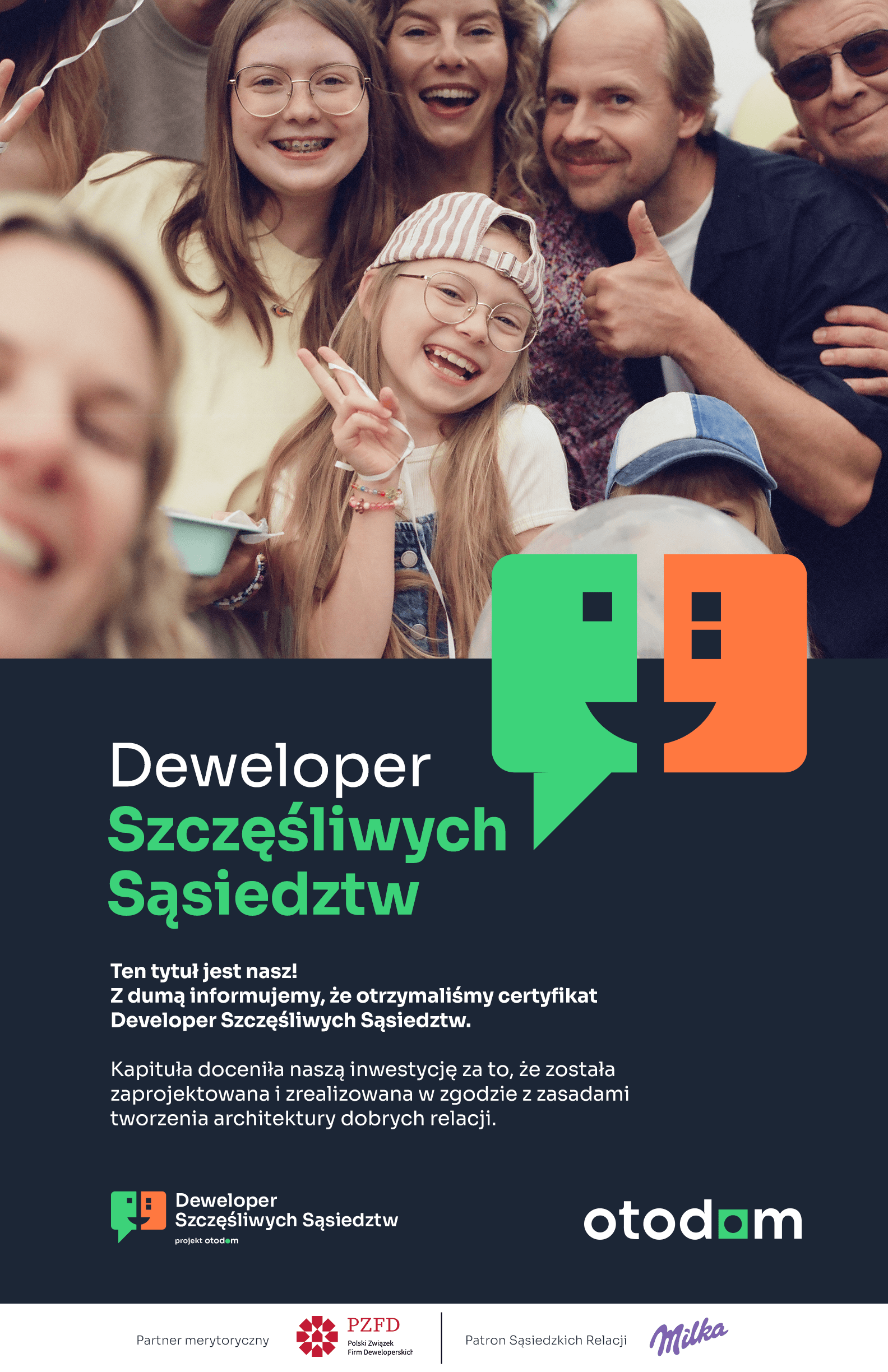 Certyfikat Dewelopera Szczęśliwych Sąsiedztw przyznawany jest inwestycjom, których projekty w świadomy sposób wspierają budowanie relacji i poczucie wspólnoty.
