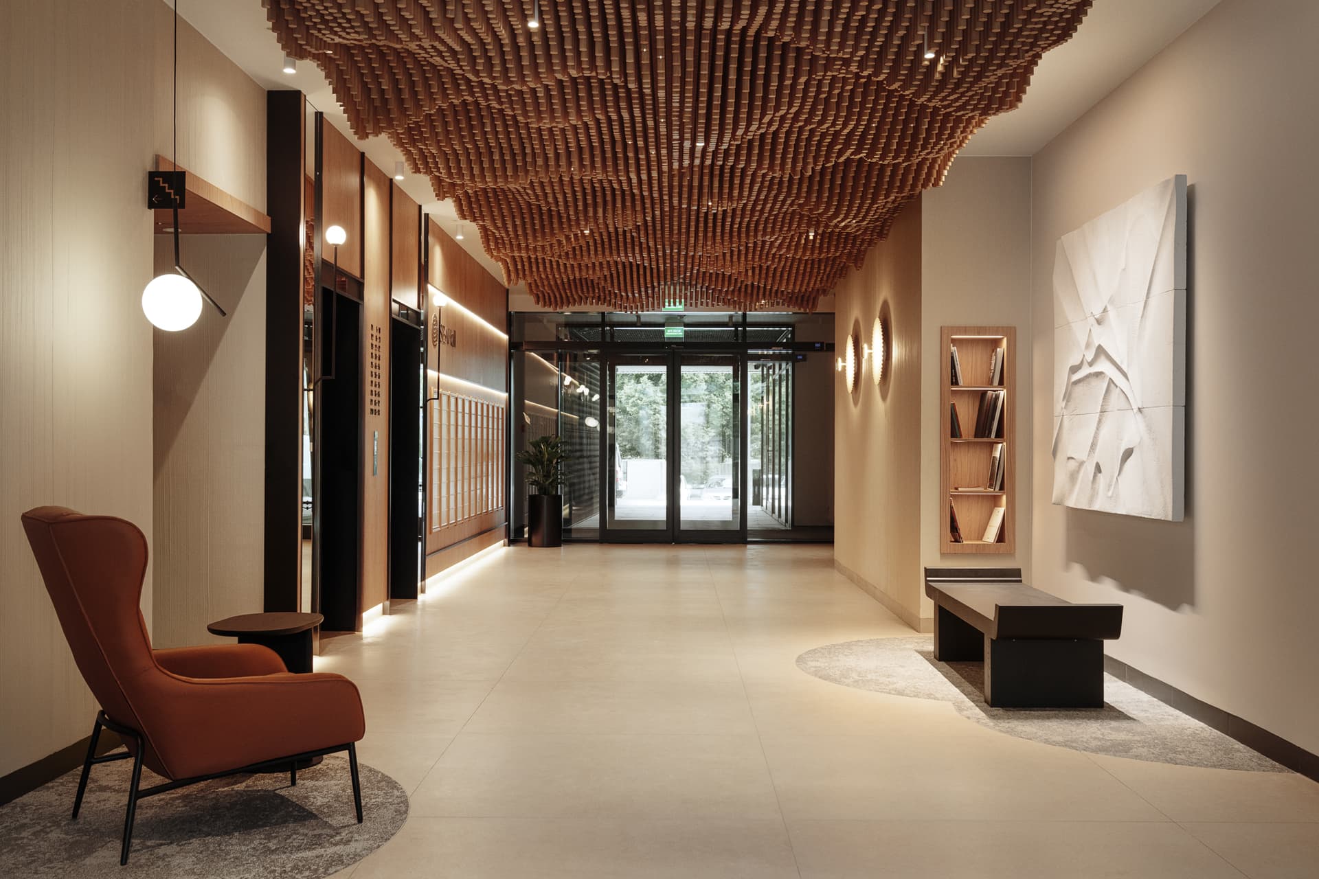 Istotnym elementem projektu jest również obecność rzemiosła, sztuki oraz wyselekcjonowanej roślinności we wnętrzach inwestycji. Walory artystyczne i naturalne w częściach wspólnych wpłynęły na charakter przestrzeni, zachęcając do zatrzymania się w niej na dłużej.