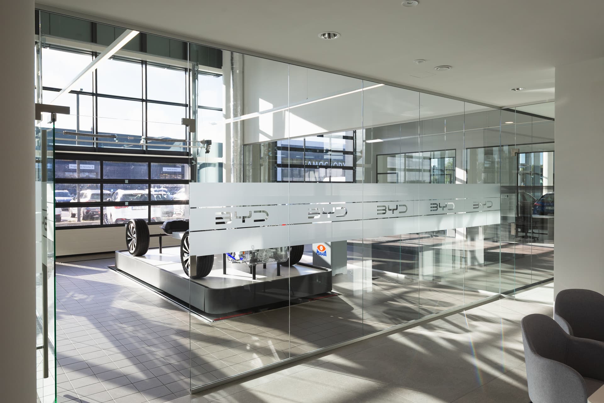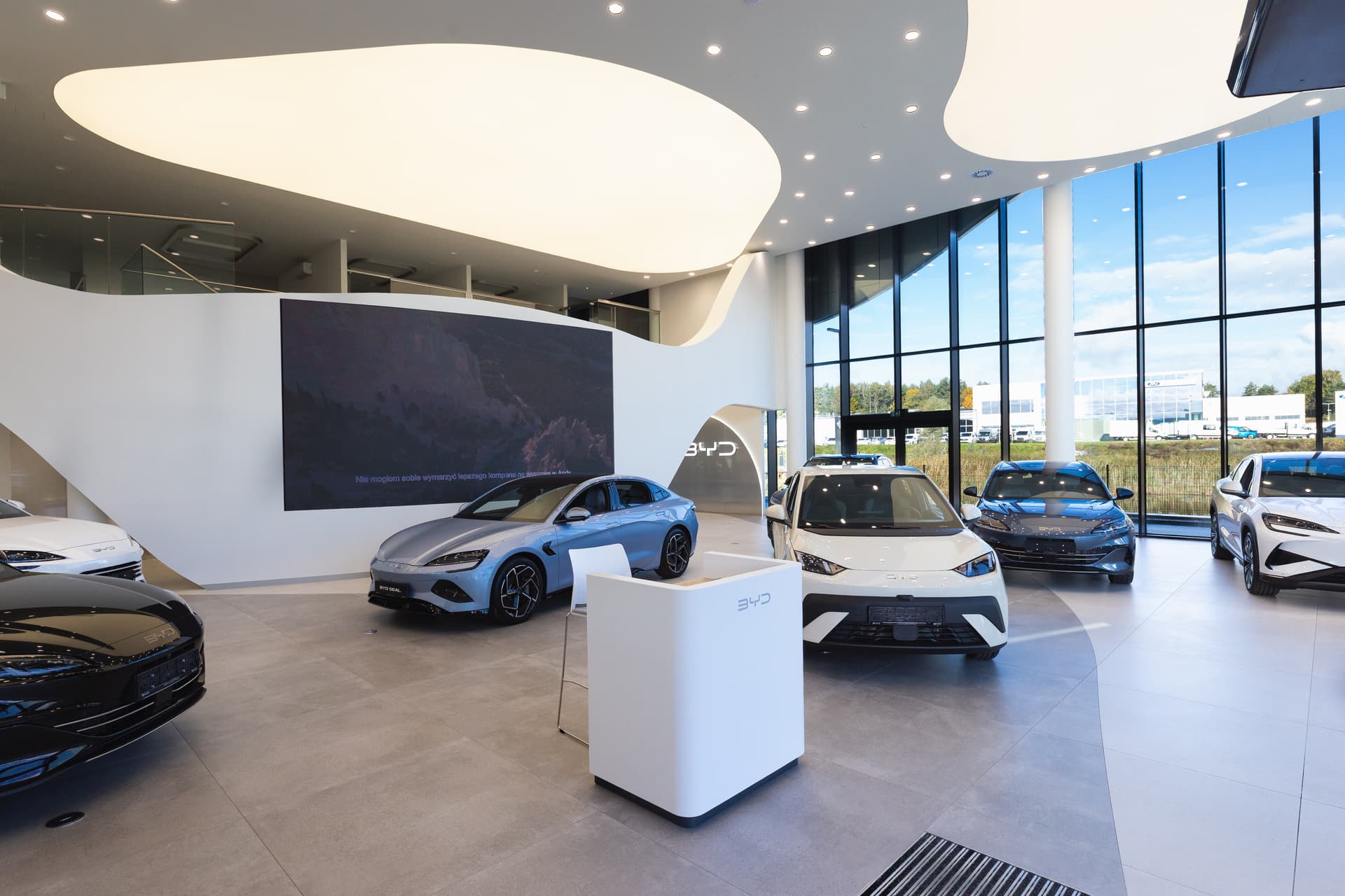 Wymagająca i nowoczesna realizacja multisalonu samochodowego, która obejmowała postawienie budynku z zaawansowaną konstrukcyjnie szklaną fasadą, wewnętrznymi ścianami łukowymi oraz sufitami napinanymi. W chwili oddania do użytku, salon BYD był najbardziej innowacyjnym obiektem tej marki na terenie UE, jednocześnie jest kolejną terminową realizacją dla Grupy Plichta.