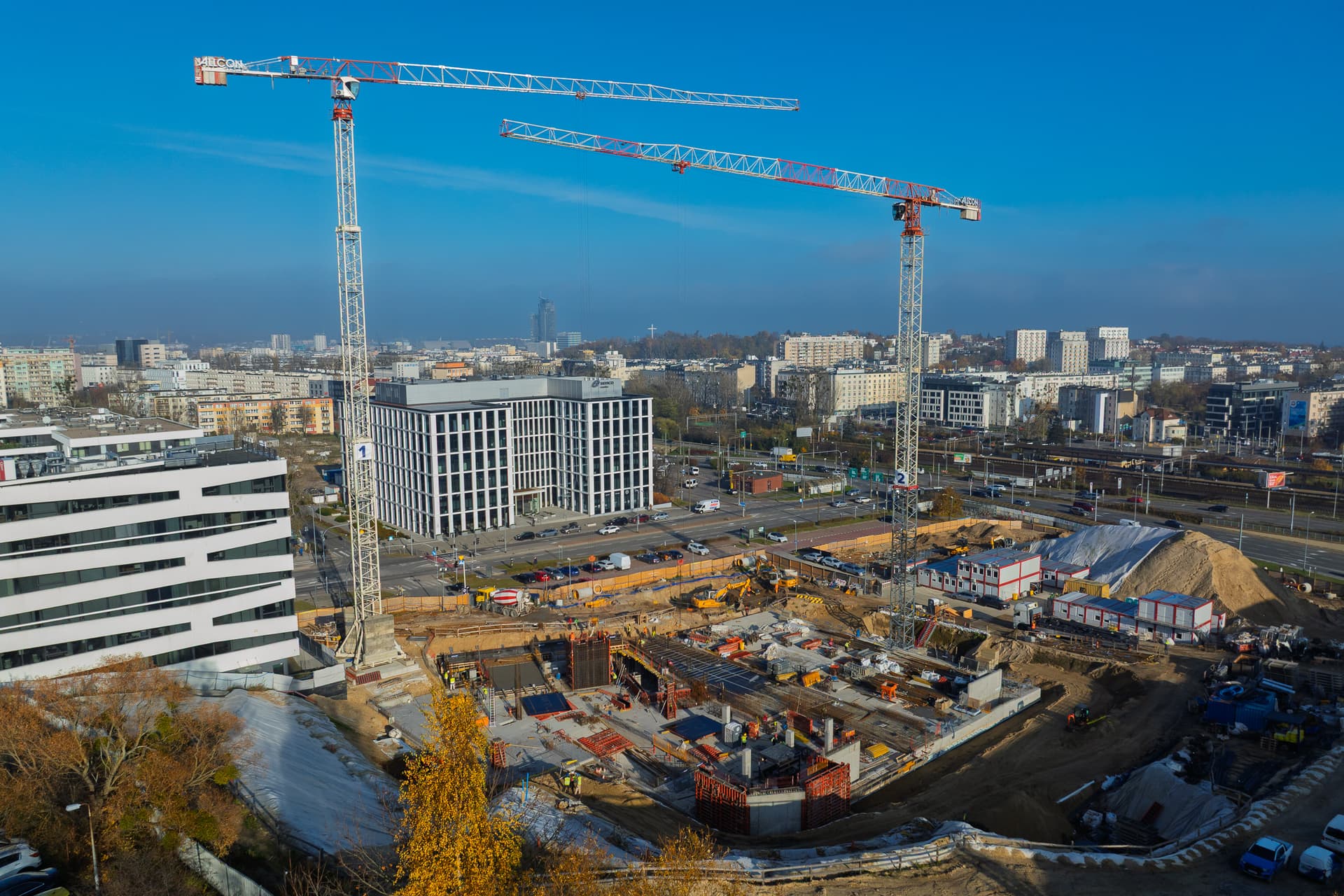 Zakończyliśmy realizację stropu kondygnacji RU1, co pozwoliło osiągnąć pełny stan „zerowy” budynku. Rozpoczęliśmy wykonywanie elementów pionowych kondygnacji R01, które stopniowo wyniosą budynek ponad poziom terenu. Zrealizowano również przebudowę głównego odcinka kanalizacji sanitarnej, finalizując jeden z istotnych etapów infrastruktury technicznej.