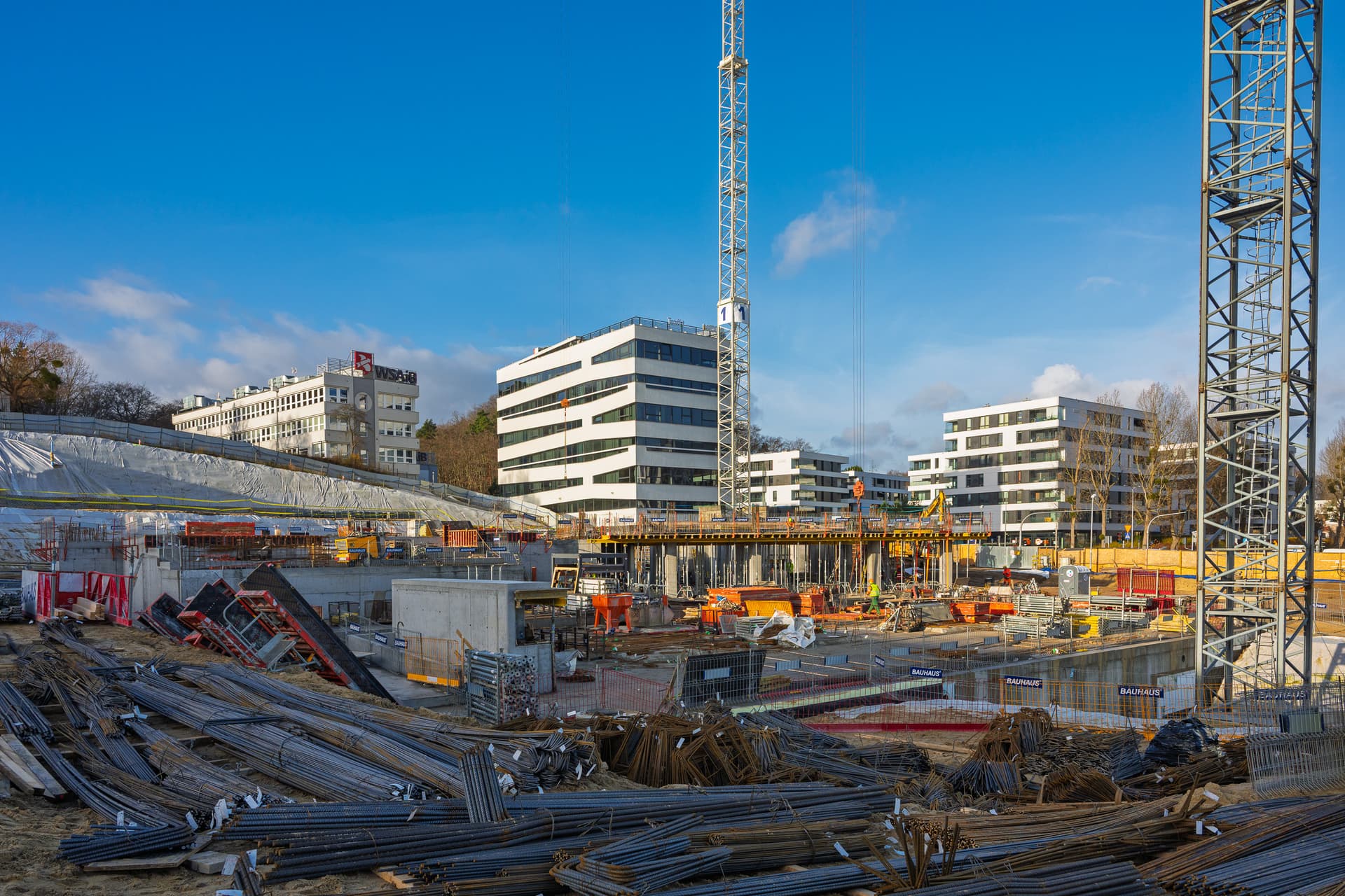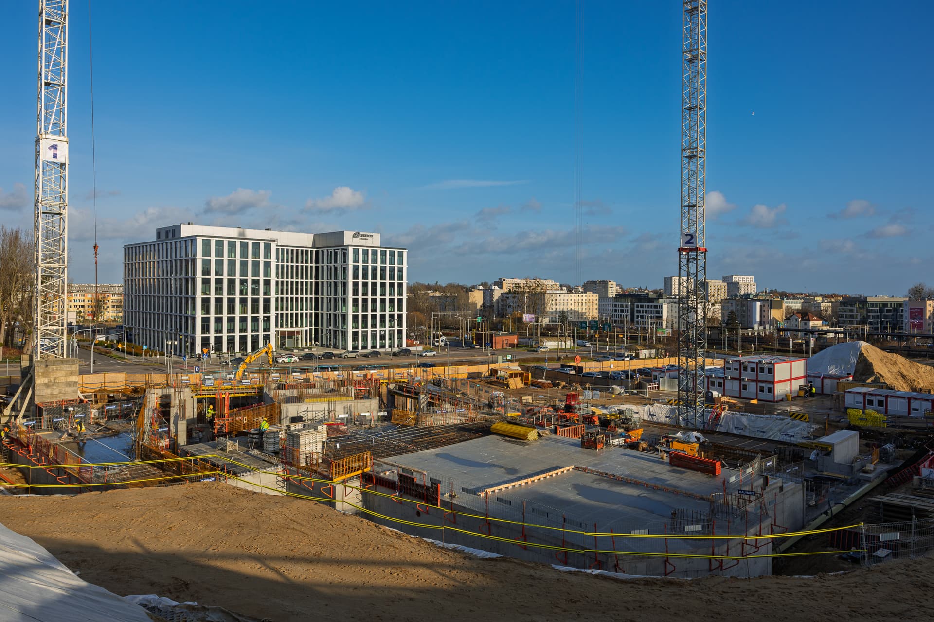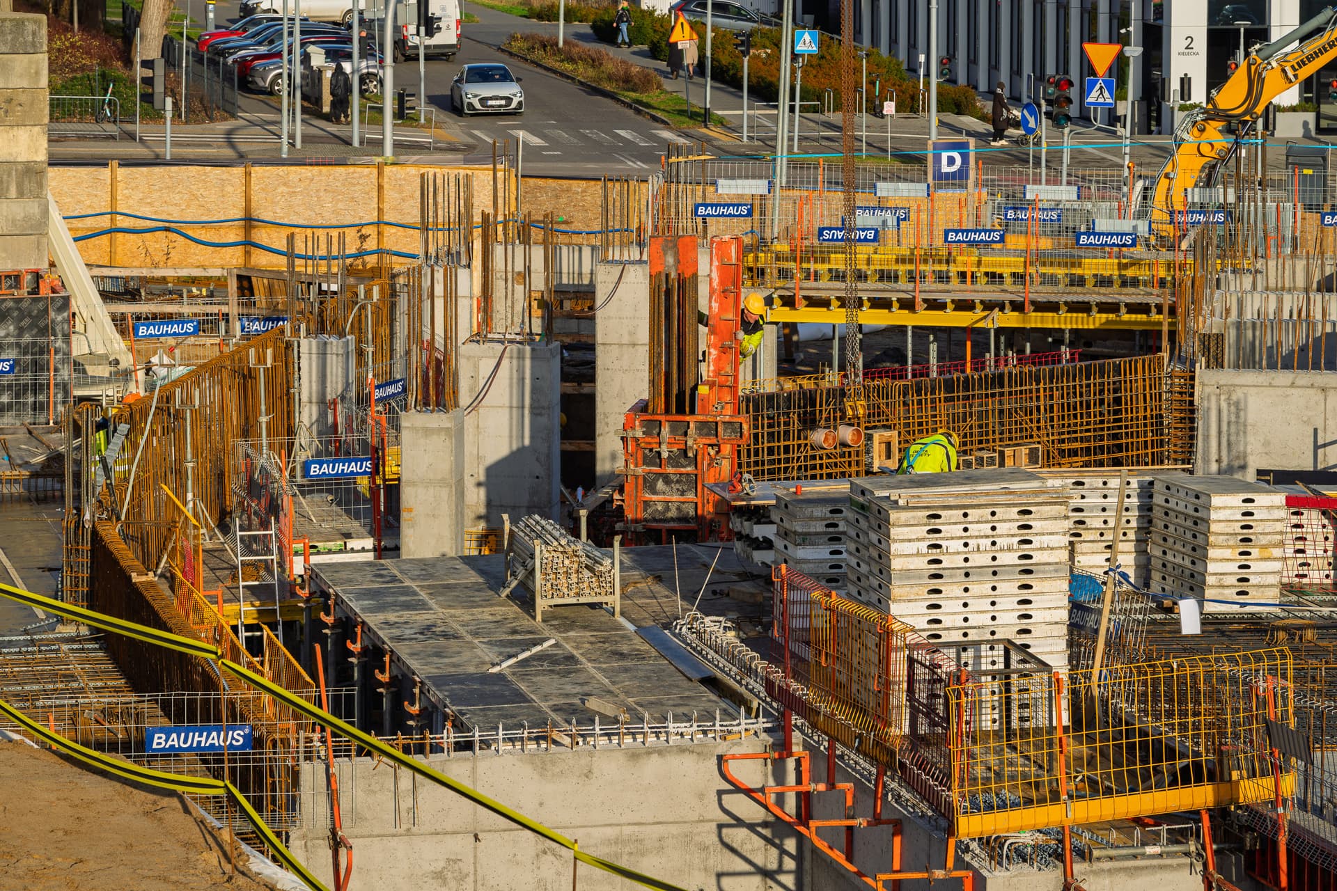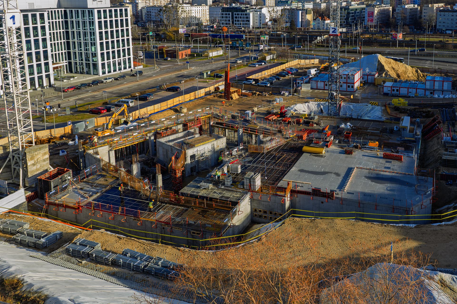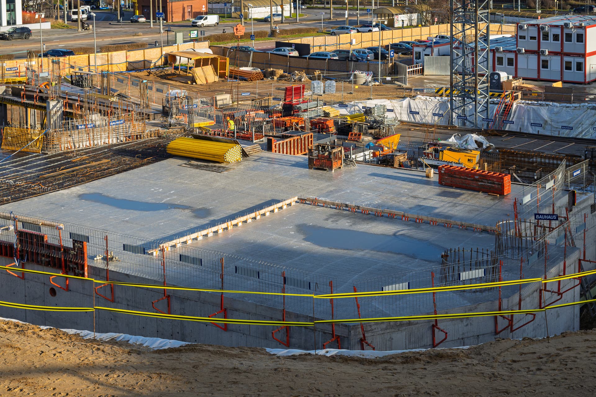 Została wykonana większa część elementów pionowych kondygnacji R01. Równolegle rozpoczęliśmy prace nad realizacją kolejnego stropu, dzielącego parter i pierwsze piętro, dzięki czemu utrzymujemy płynne tempo prac.